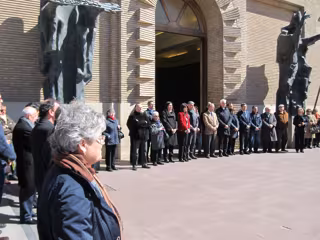 A la concentración han acudido buena parte del Gobierno de la ciudad y representantes de todos los grupos municipales, PP, PSOE, CHA e IU, además de trabajadores municipales.