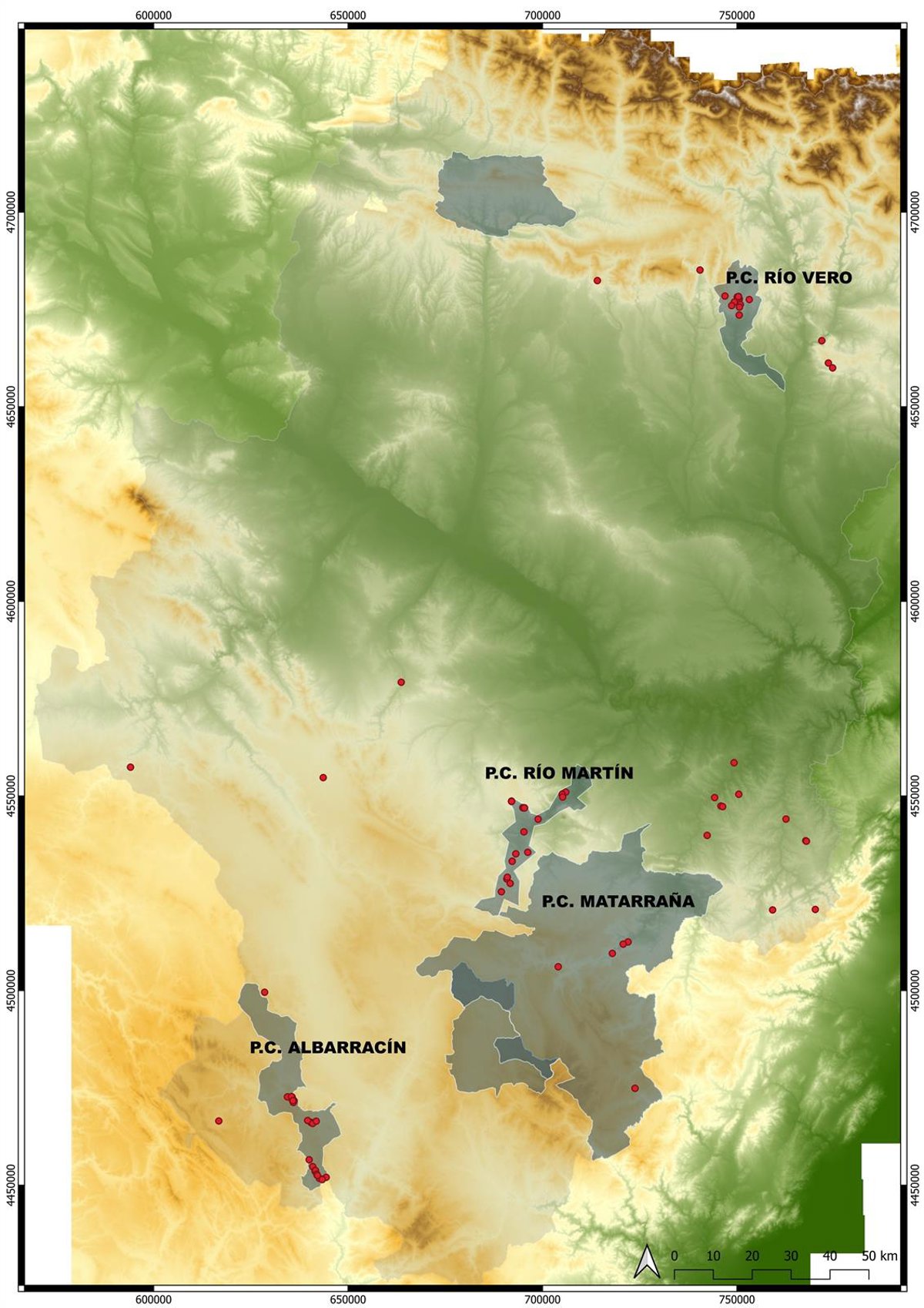 De ellos, cuatro poseen enclaves con Arte Rupestre Levantino y Esquemático que han sido declarados Patrimonio Mundial por la UNESCO: los del Río Vero y Río Martí, así como el de Albarracín y el del Maestrazgo. En este último caso, su especial relevancia recae en sus excelencias en materia de patrimonio paleontológicos y geológico.