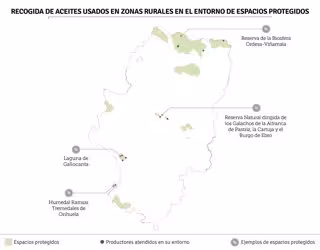 Gran importancia ha tenido, asimismo, la recogida del residuo junto a espacios protegidos, donde evitar la contaminación del aceite usado resulta imprescindible para evitar un importante impacto ambiental.