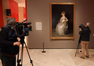 Varios fotógrafos realizan fotos a la obra restaurada por Elisa Mora de 'La condesa de Chinchón de Francisco de Goya, en el Museo del Prado. - Marta Fernández Jara - Europa Press