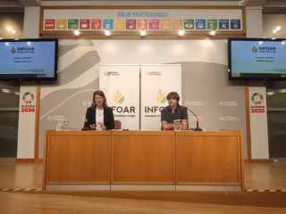 La directora general de Gestión Forestal, Ana Oliván, y el asesor técnico Jaime Sendra, en la presentación del balance de la campaña de prevención y extinción de incendios forestales en Aragón. - EUROPA PRESS