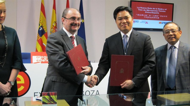 Este tren partió por primera vez de Yiwu el 18 de noviembre de 2014 y dos meses después hizo el recorrido a la inversa. El presidente de Aragón, Javier Lambán, y el secretario general del Partido Comunista en la ciudad china de Yiwu, Sheng Qiuping, han firmado este lunes, 14 de marzo, un convenio de colaboración en Zaragoza para impulsar las importaciones a través del ferrocarril y las inversiones mutuas.
