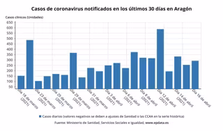 Los casos de COVID-19 notificados en los últimos 30 días en Aragón. - EPDATA
