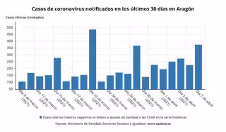 Casos de coronavirus notificados en los últimos 30 días en Aragón. - EPDATA