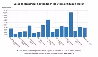 Casos de coronavirus notificados en los últimos 30 días en Aragón. - MINISTERIOS DE SANIDAD