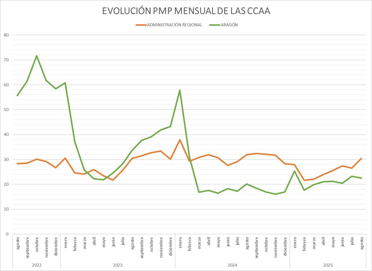 El Gobierno de Aragón mantiene, desde hace casi dos años, una evolución muy positiva en el cumplimiento de los plazos de pago a sus proveedores. Según los últimos datos publicados por el Ministerio de Hacienda, el periodo medio de pago (PMP) de la comunidad autónoma se situó en 21,48 días en octubre, mientras que la media de las comunidades autónomas alcanza los 28,45 días.