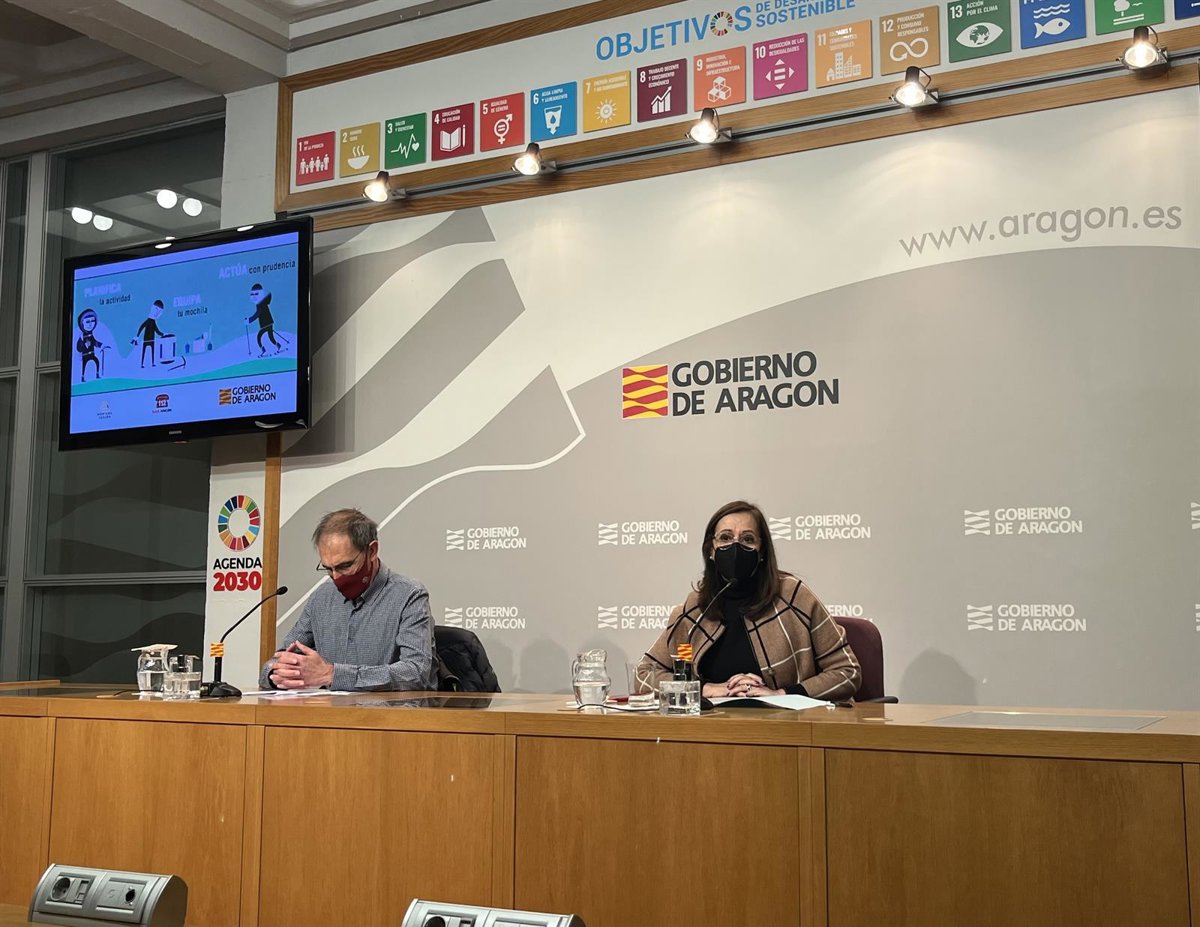 La directora general de Interior y Protección Civil, Carmen Sánchez, junto al presidente de la Federación Aragonesa de Montañismo, Javier Franco, en la rueda de prensa - EUROPA PRESS