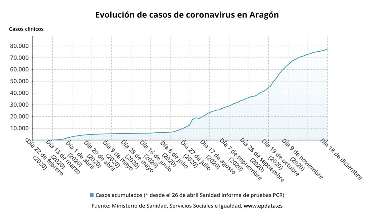 La Comunidad aragonesa ha notificado este viernes 178 casos y la positividad se ha situado en el 7,7 por ciento. Estos positivos corresponden a los resultados de 2.313 pruebas y se han dado 418 altas epidemiológicas.