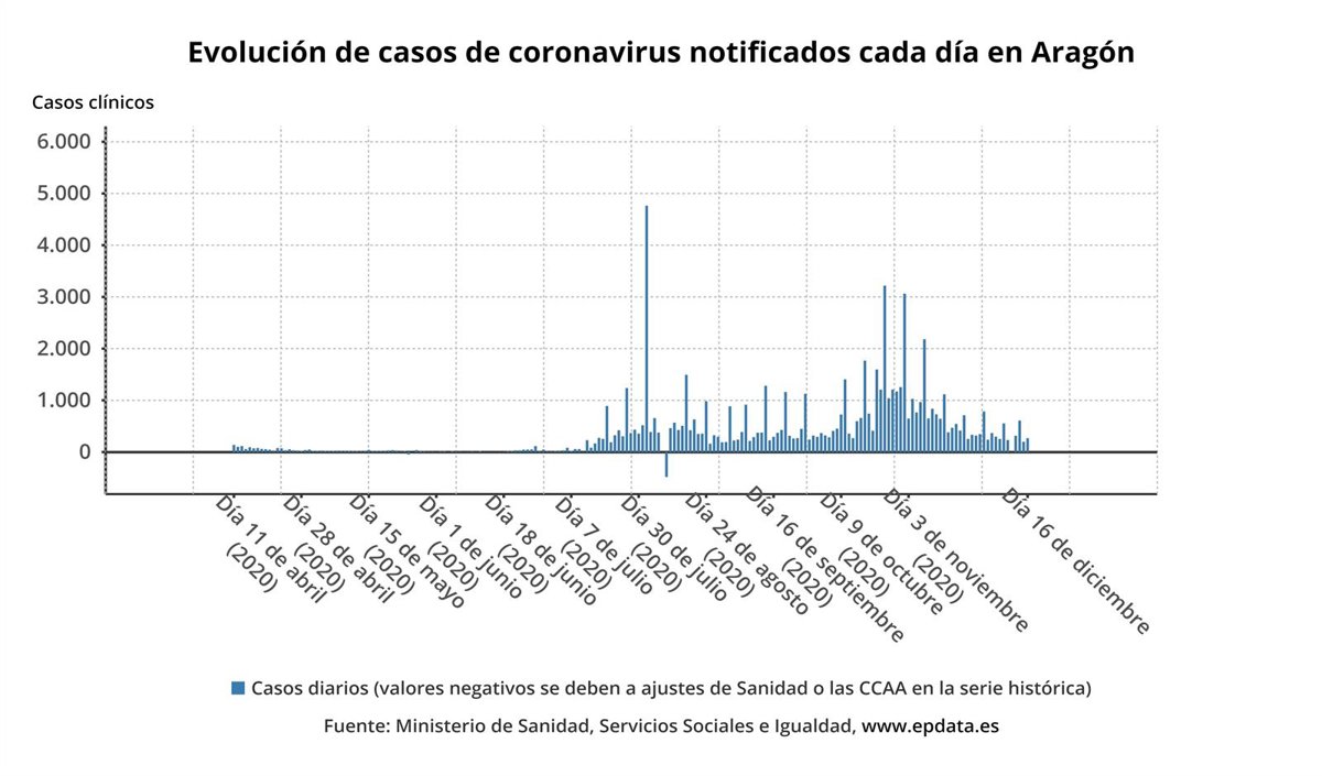 Evolución de casos de coronavirus notificados cada día en Aragón. - EPDATA