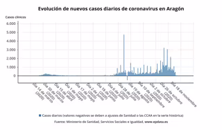 Evolución de nuevos casos diarios de coronavirus en Aragón. - EPDATA