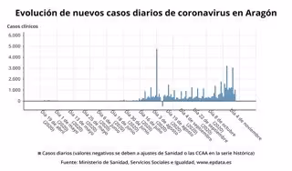 Evolución de nuevos casos diarios de coronavirus en Aragón. - EPDATA