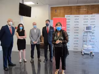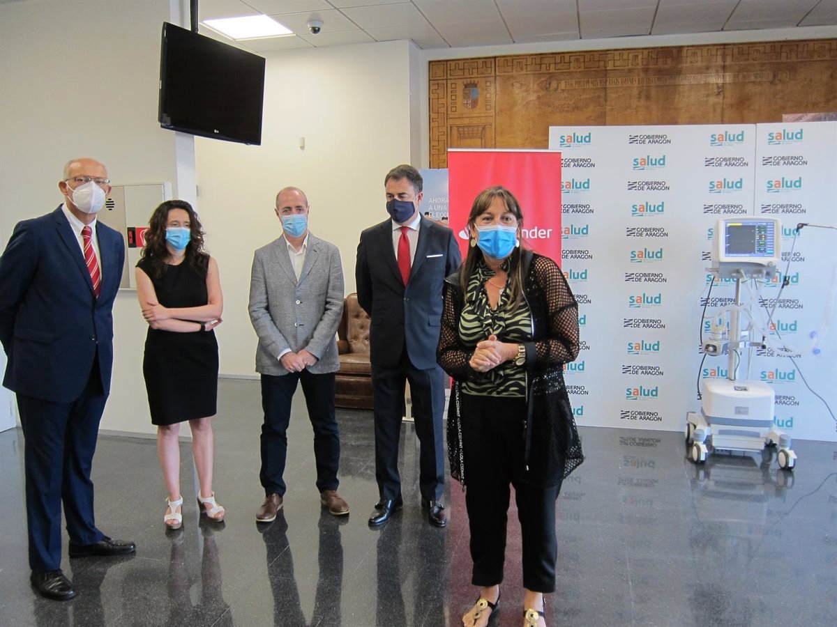 La consejera de Sanidad de Aragón, Sira Repollés, recibe dos respiradores donados por el Banco Santander a la Comunidad autónoma. - EUROPA PRESS