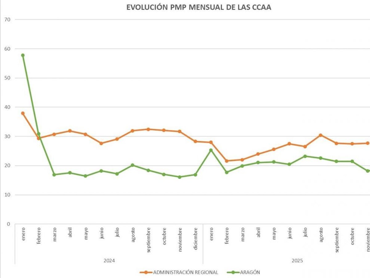 Este comportamiento se produce en un contexto en el que el periodo medio de pago de la Administración Regional se sitúa en 26,21 días en 2025, pendiente igualmente del cierre definitivo del ejercicio. Los datos publicados por el Ministerio de Hacienda permiten contextualizar la situación de Aragón dentro del conjunto de las comunidades autónomas y constatar el cumplimiento de los plazos de pago establecidos en la normativa estatal.
