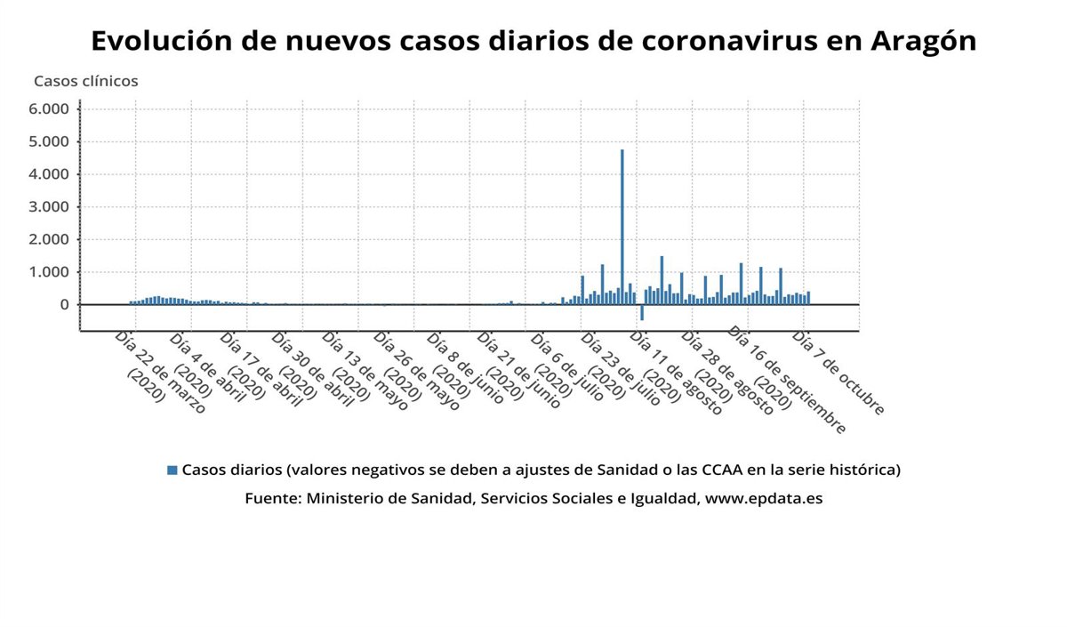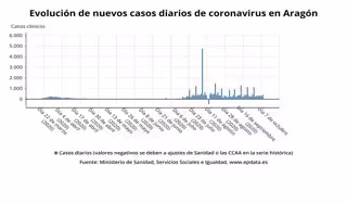 Evolución de nuevos casos diarios de coronavirus en Aragón. - EPDATA