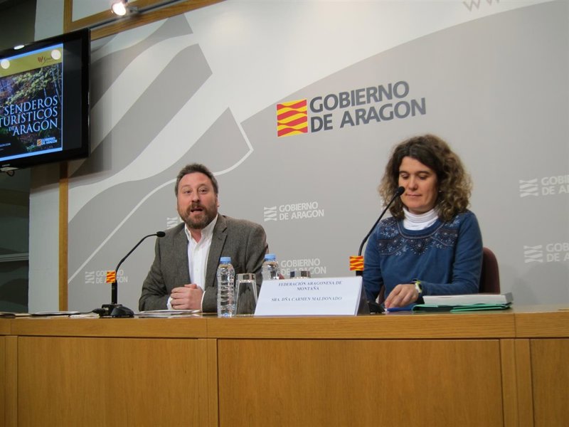El consejero de Vertebración del Territorio, Movilidad y Vivienda del Gobierno de Aragón, José Luis Soro, ha dado a conocer los datos sobre senderismo en la región este lunes, día 18, en una rueda de prensa en el Edificio Pignatelli de Zaragoza, acompañado por la directora técnica de la Federación Aragonesa de Montañismo, Carmen Maldonado.