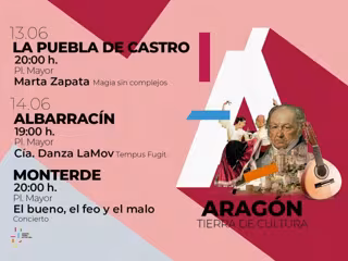 La programación 'Aragón, tierra de cultura', que promueven las direcciones generales de Cultura y Turismo del Gobierno de Aragón, ofrecerá este fin de semana espectáculos de magia, danza, música y circo en las localidades de La Puebla de Castro, Albarracín, Monterde, Malón y Cella.