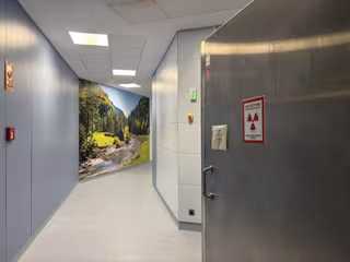 Zona de acceso a instalaciones de radioterapia en el Hospital Clínico de Zaragoza, con medidas de protección y control para garantizar la seguridad durante el uso de radiación - GOBIERNO DE ARAGÓN