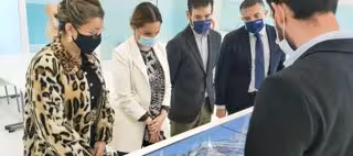 Maru Díaz durante su visita, frente a la nueva mesa digital de disecciones - GOBIERNO DE ARAGÓN