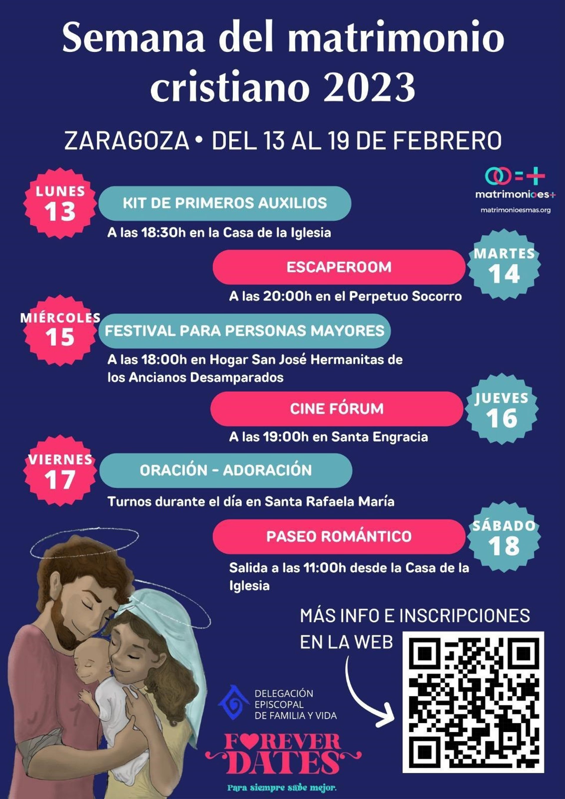 La Archidiócesis de Zaragoza ha organizado, del 13 al 18 de febrero, y por segundo año consecutivo, junto con el resto de las diócesis españolas, una semana sobre el matrimonio cristiano, coincidiendo con la fiesta de San Valentín. Se trata de una iniciativa de la Conferencia Episcopal Española, que incluye actividades en todas las diócesis y quiere manifestar "de forma alegre y desenfada la belleza y la bondad del matrimonio cristiano".