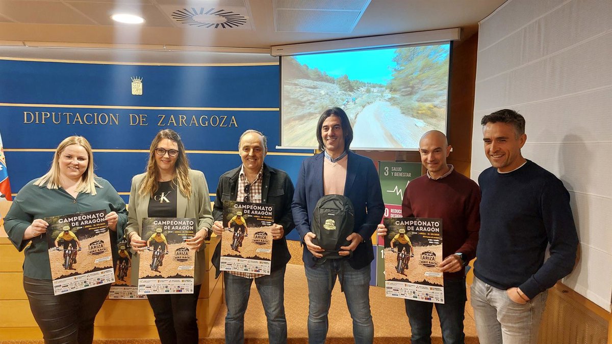 El evento deportivo se ha presentado este jueves en la DPZ con el diputado provincial y alcalde de Ariza, José Carlos Tirado; el presidente de la Federación Aragonesa de Ciclismo, Luis Marquina; el exciclista internacional y embajador de la prueba, Ángel Vicioso; y uno de los organizadores, Juan Luis Córcoles.