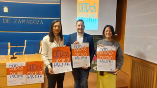 La tercera edición de 'Retrospectiva' se ha presentado este martes en la Diputación de Zaragoza (DPZ) con la diputada provincial Cristina Palacín; el alcalde de Quinto, Jesús Morales; y la coordinadora de la iniciativa, Paula Blesa.