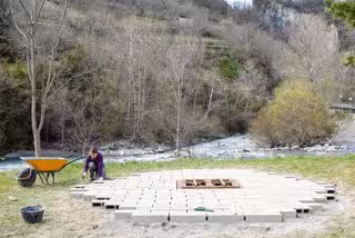 La artista francesa Emmanuelle Ducrocq ha presentado en el parque municipal de la localidad de Broto la instalación 'Cuerpo a cuerpo/corps à corps'.