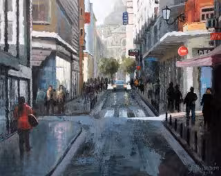 El artista busca obtener reflejos a través del uso de recursos como el atardecer, el contraluz, la lluvia, la niebla y el alumbrado. Otro de los aspectos importantes es la perspectiva, con la que introduce al espectador en las obras para dirigir su mirada a un espacio final, ha detallado Ibercaja en una nota de prensa.