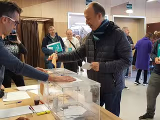 El cabeza de lista de Más Pais-CHA-Equo al Congreso por Zaragoza, Carmelo Asensio, deposita su voto - CHA