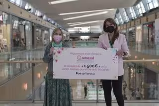 Precisamente, este viernes ha tenido lugar en las instalaciones del centro comercial y de ocio la entrega de un cheque por valor de 1.500 euros de la mano del gerente de Puerto Venecia, Yolanda Gimeno, y con la participación de la vicepresidenta y coordinadora de Proyectos de AMASOL, Vanessa Bergasa.