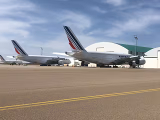 El Aeropuerto de Teruel ha recibido este sábado, 25 de abril, dos Airbus 380 de la compañía AirFrance, el avión de pasajeros más grande del mundo, que se suman a las cerca de 90 aeronaves que albergan estas instalaciones para su estacionamiento y mantenimiento con motivo de la crisis del coronavirus.