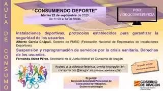 La Dirección General de Protección de Consumidores y Usuarios del Departamento de Ciudadanía y Derechos Sociales del Gobierno de Aragón ha organizado la primera aula de consumo del curso 2020-2021, que tendrá lugar este martes, 22 de septiembre, y versará sobre actividades deportivas y derecho de los consumidores.