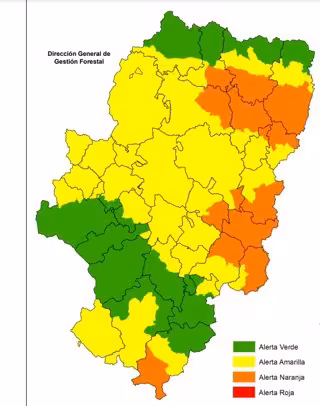 Mapa con el nivel de alertas por riesgo de incendios para este domingo en Aragón - GOBIERNO DE ARAGÓN
