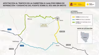 Durante la afectación, el tráfico dispondrá de itinerario alternativo por las carreteras N-260A, entre Broto y Fiscal; N-260, entre Fiscal y Sabiñánigo y N-260A, entre Sabiñánigo y Broto por Biescas.
