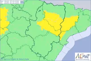 Según un parte de la Agencia Estatal de Meteorología (AEMET), este aviso estará vigente en el centro y sur de la provincia oscense y en la Ribera del Ebro, desde las 21.00 horas de este martes, 7 de enero, y hasta las 12.00 horas de este miércoles, ha informado el Ejecutivo autonómico en una nota de prensa.
