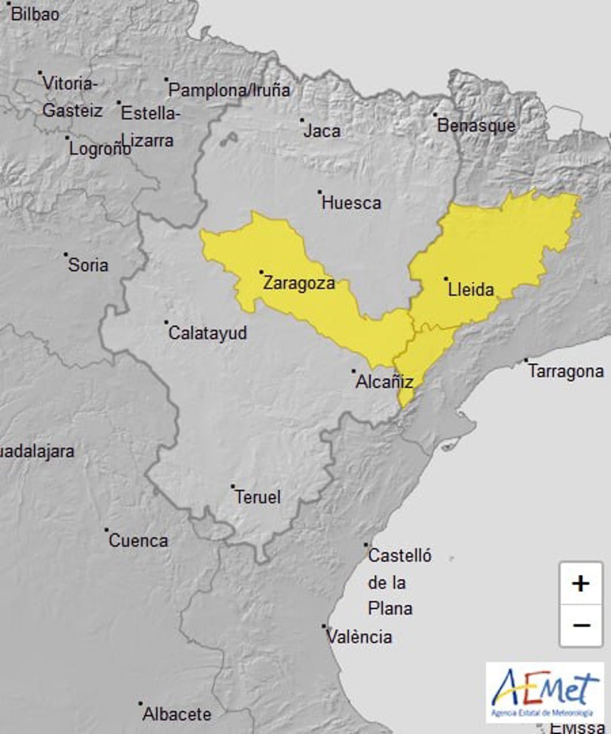 La Dirección General de Justicia e Interior ha informado de que la Agencia Estatal de Meteorología (Aemet) ha emitido un aviso amarillo por temperaturas máximas para este sábado, en la Ribera del Ebro.