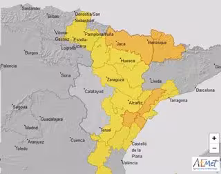 En concreto, ha alertado por vientos --nivel amarillo-- en: el Pirineo oscense, durante toda la jornada de este domingo y para este lunes día 10 de las 10.00 a las 24.00 horas; en Gúdar y Maestrazgo (Teruel) hasta las 24.00 horas de este lunes, y en el Centro y sur de Huesca, Cinco Villas (Zaragoza), Ribera el Ebro (Zaragoza) y Bajo Aragón (Teruel) desde las 22.00 de este domingo día 9 hasta las 18.00 del día 10.