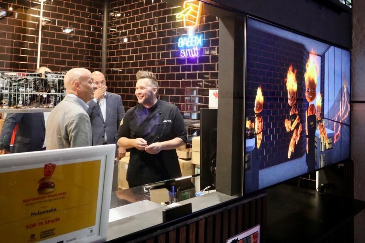 Transparencia, Carlos Gimeno, ha conocido el funcionamiento de uno de los proyectos que se ha acogido a estas ayudas del Ayuntamiento de Zaragoza en 2022, el restaurante Nola Smoke del chef Alex Viñal, para crear "Smoky".