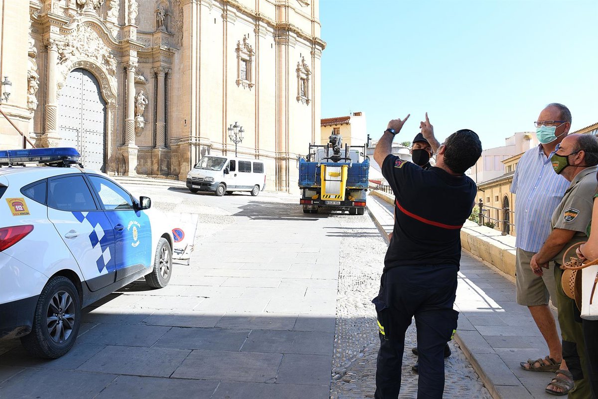 Operativo para retirar nidos vacíos de cigüeñas de la fachada de la Iglesia de Santa María de Alcañiz (Teruel). - AYUNTAMIENTO DE ALCAÑIZ
