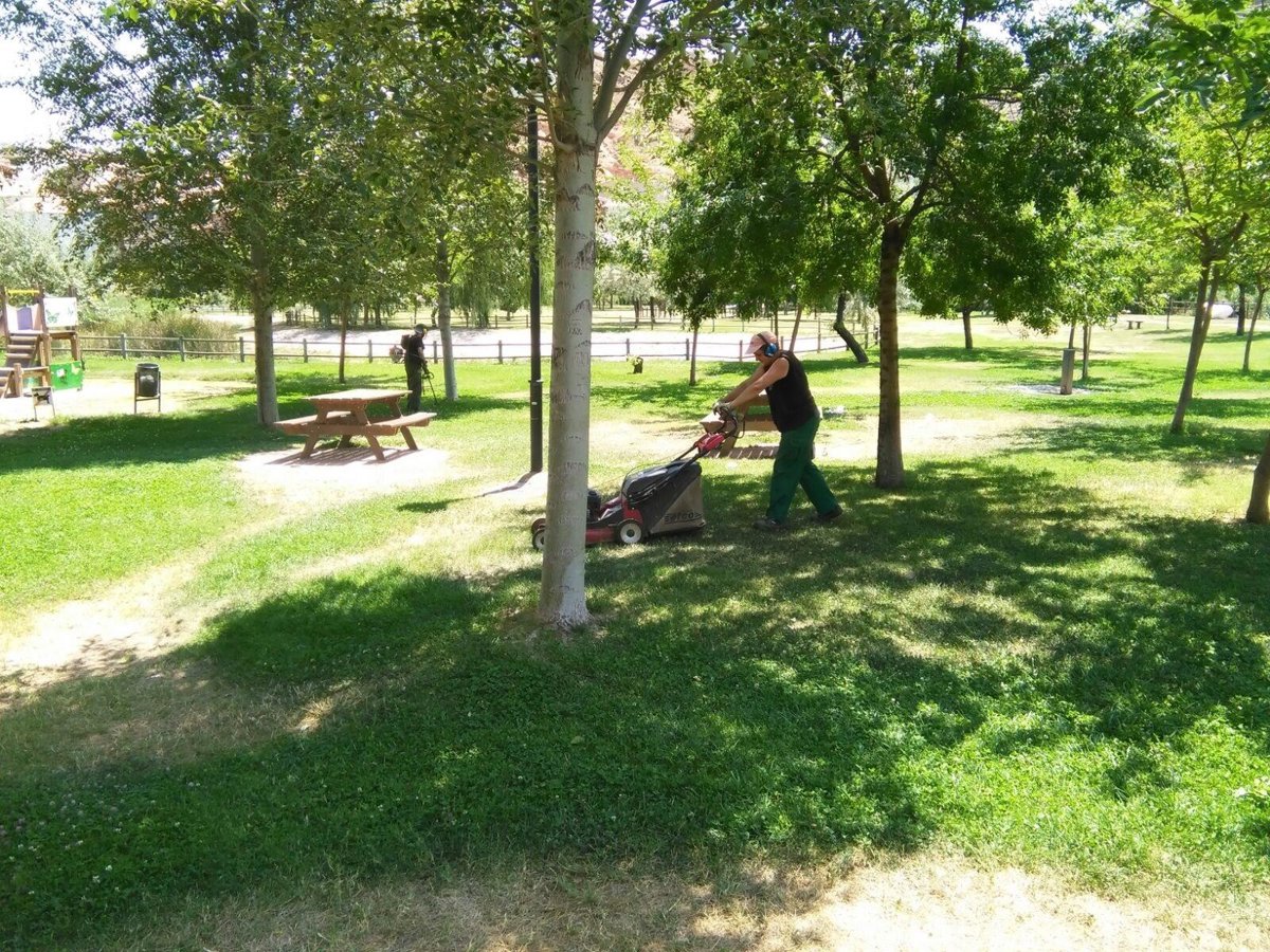 Desde este mes, un equipo de tres personas, formado por un monitor y dos usuarios de ATADI, se ocupan de conservar este espacio natural que se encuentra en el casco urbano de la localidad y al que se suman otras dos personas de ATADI, en tareas puntuales. El mantenimiento supone actuar en la siega del césped, limpieza, poda del arbolado y el control del sistema de riego, entre otras labores.