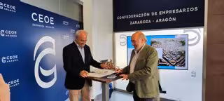 El acuerdo, rubricado por el presidente de CEOE Aragón, Miguel Marzo, y el alcalde de Calatayud, José Manuel Aranda, pretende fomentar el desarrollo económico y la digitalización de las empresas para potenciar la proyección exterior de una comarca que aspira a generar un efecto llamada para nuevos negocios.