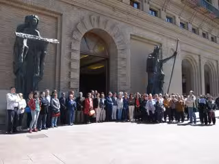 Miembros de la corporación municipal y cargos públicos del PSOE, PP, CHA e IU han guardado un minuto de silencio ante el consistorio de la capital aragonesa, en la Plaza del Pilar, acto en el que no han podido participar el alcalde Juan Alberto Belloch y el portavoz del PP, Eloy Suárez, debido a su presencia en el Senado y Congreso, respectivamente, este martes en Madrid.