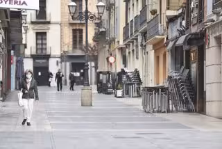 Una de las calles de Huesca con los veladors recogidos - Verónica Lacasa - Europa Press