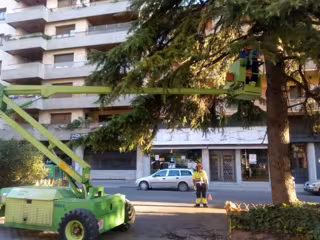 Miembros de la Brigada de Parques y Jardines están actuando en una treintena de árboles. En concreto, acometen labores de limpieza y refaldado en 28 cedros y tres olmos.