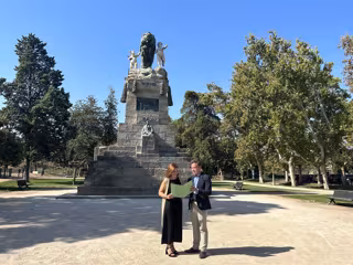 Sara Fernández y Víctor Serrano frente al monumento en el Parque Grande - EUROPA PRESS