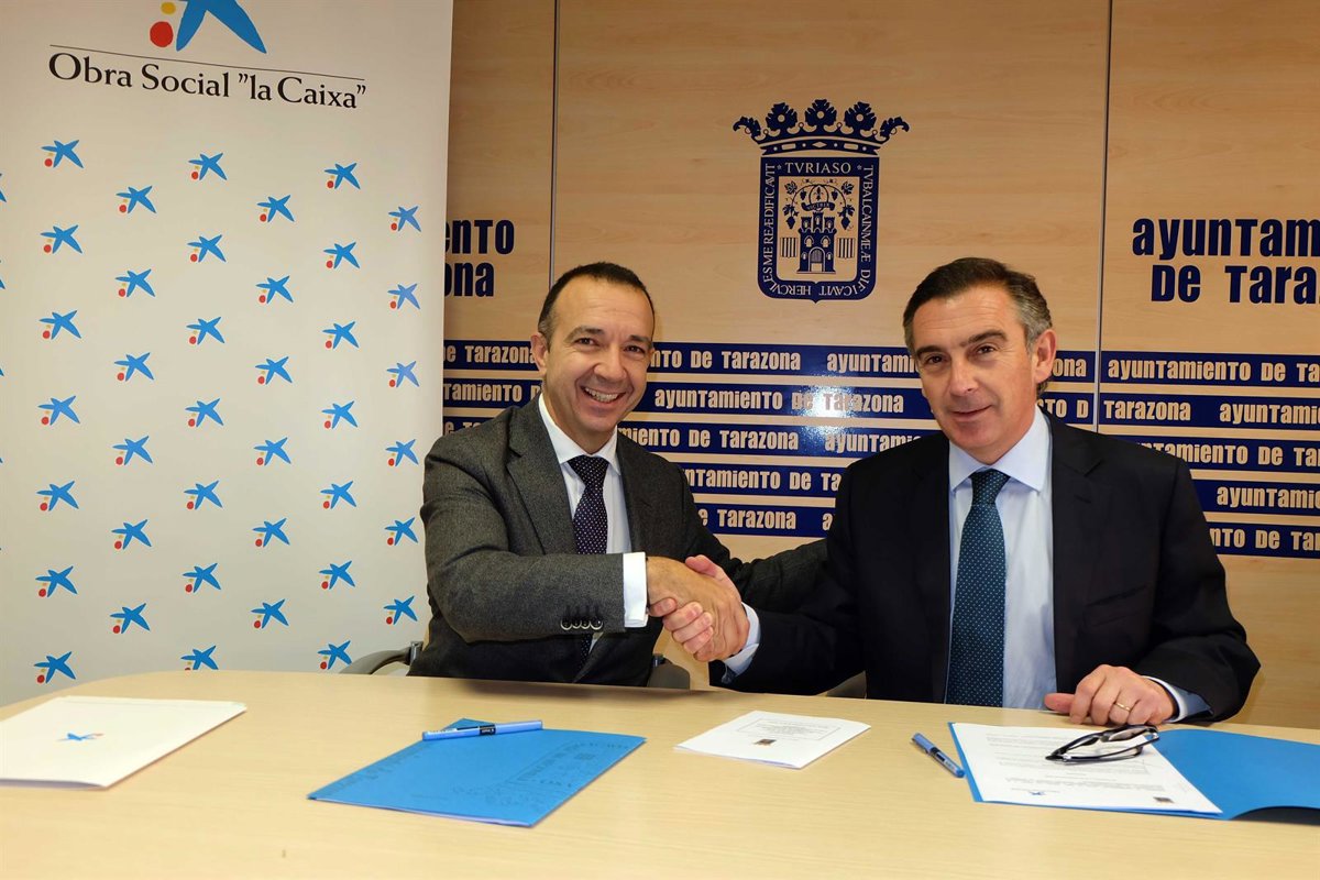 El Ayuntamiento de Tarazona y la Obra Social 'la Caixa' han firmado un convenio de colaboración para favorecer la inclusión laboral las mujeres y la excelencia de estudiantes sin recursos. El alcalde de la ciudad, Luis María Beamonte, y el director territorial de Aragón y La Rioja de CaixaBank, Raúl Marqueta, han rubricado este martes el documento.