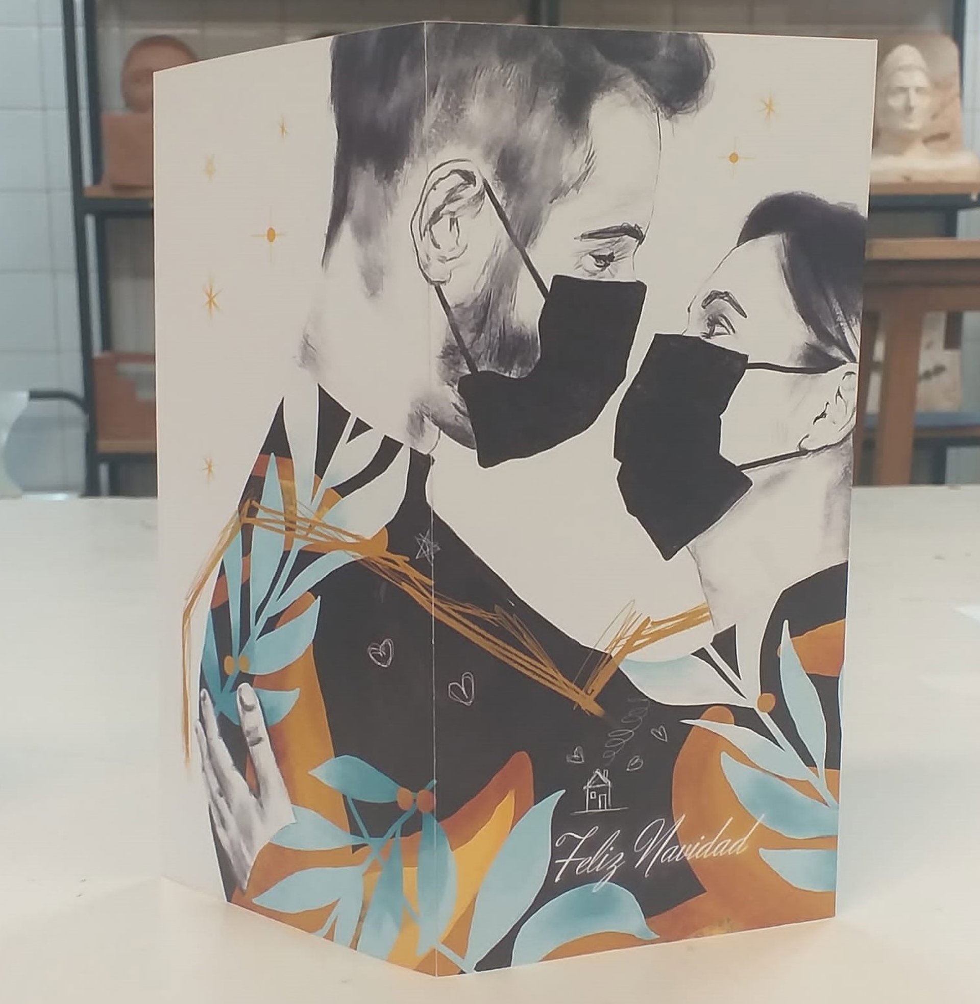 "Que La Pandemia No Sea Una Barrera Para El Amor", Título De La Obra Ganadora Del Concurso De Tarjetas De Felicitación De Naavidad Convocado Por El Ayuntamiento De Teruel. Realizada Por Felipe Ecarreño - AYUNTAMIENTO DE TERUEL