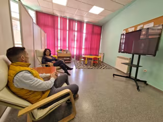 Además, se ha llevado a cabo una reorganización de los espacios interiores para mejorar su funcionalidad y adaptarlos a las necesidades actuales. La antigua sala de lectura se ha dividido en dos zonas diferenciadas: una zona infantil en la planta calle, equipada con mobiliario adaptado, y un espacio polivalente con televisión, prensa y mesas para juegos.