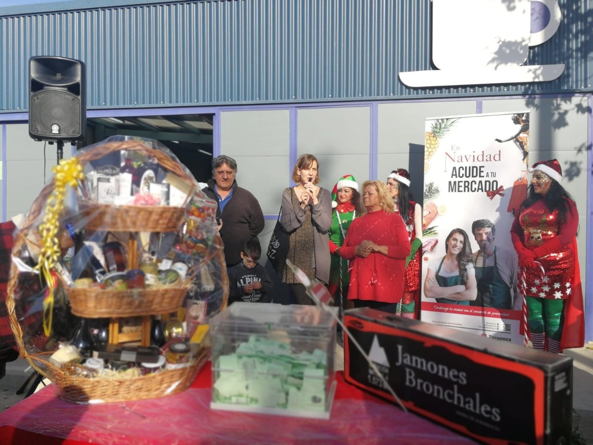 El Ayuntamiento de Zaragoza sigue apostando por la dinamización de los mercados de la ciudad. Así, este domingo la concejala responsable de Mercados, Teresa Artigas, ha participado en el sorteo de una cesta de Navidad con productos de Aragón organizada en el Mercado Ambulante de la Almozara/Rastro.