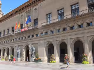 Archivo - El Ayuntamiento de Zaragoza con arreglos florales delante de los soportales - EUROPA PRESS - Archivo