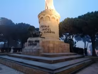 Los servicios municipales del Ayuntamiento de Zaragoza ha procedido a limpiar unas pintadas que han aparecido en el parque Grande, tanto en el monumento al rey Alfonso I El Batallador, como en la fuente ubicada al pie de su escalinata en las que se puede leer "Pablo Hasel libertad".